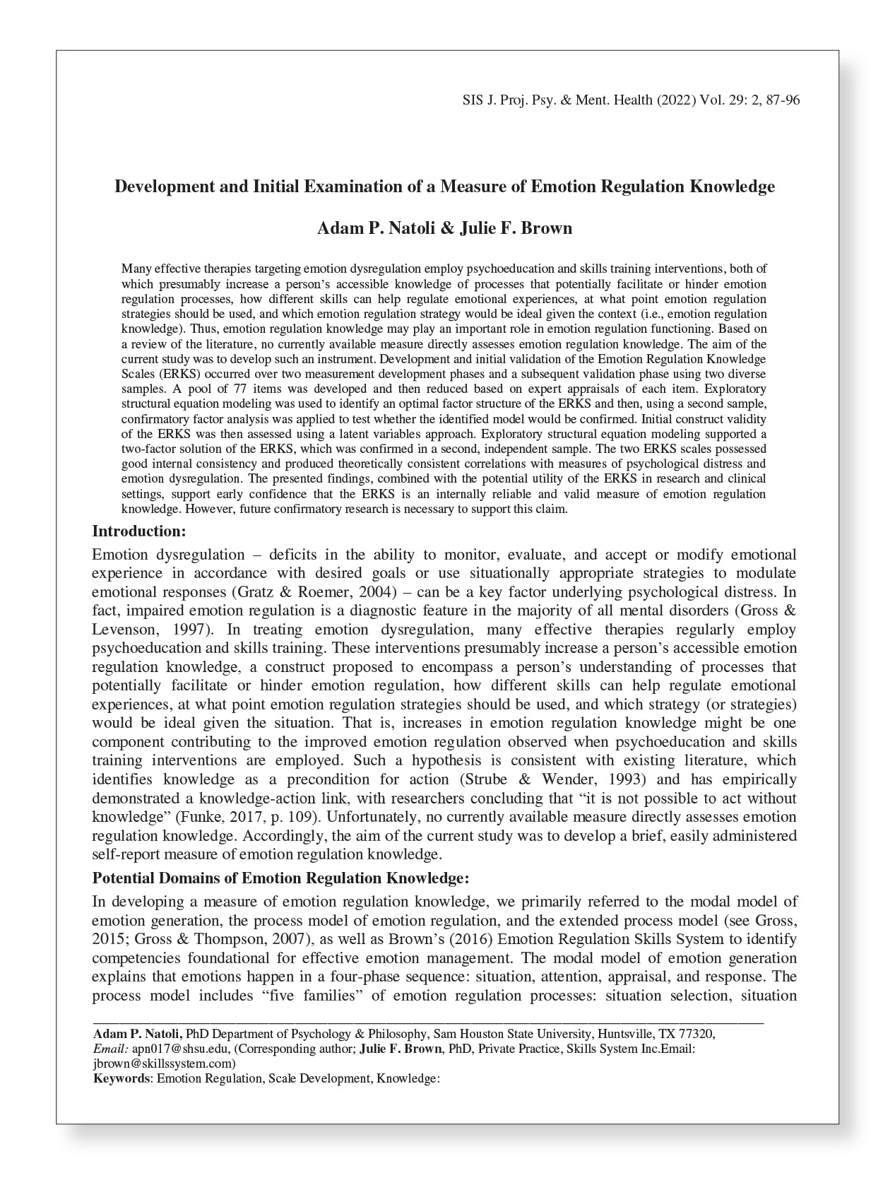 NEW MEASURE: Emotion Regulation Knowledge Scale (ERKS)