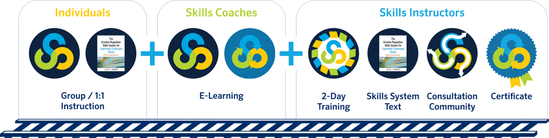 The 2016 Skills System book (The Emotion Regulation Skills System for the Cognitively Challenged Client) contains teaching strategies, 12-week skills group curriculum, and 150 pages of downloadable handouts/worksheets. It is available from Guilford Press and Amazon (usually under $30). The handouts can be used in conjunction with the E-Learning lessons to individualize and deepen skills instruction. There is a link to purchase the text on the Books and Articles page under Resources.